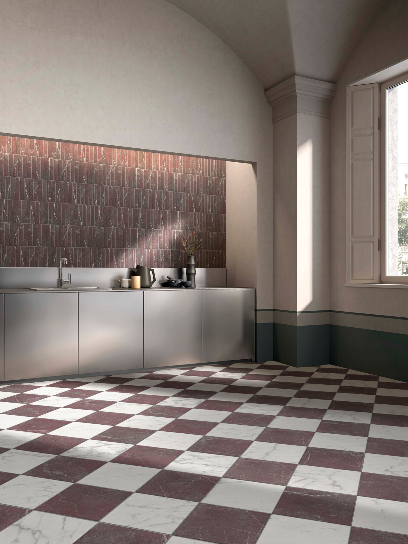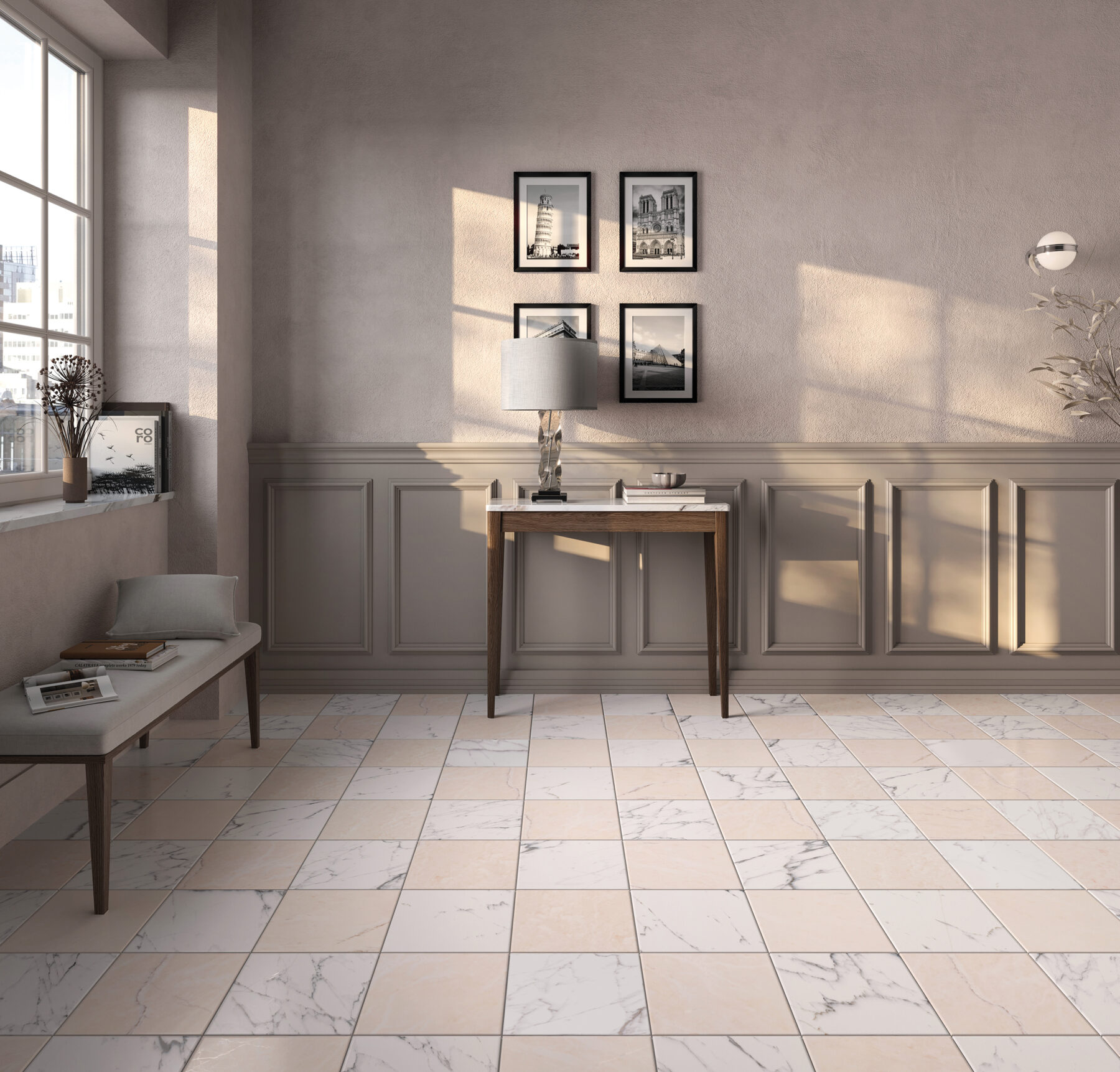 Kolekcija Dama sukurta tam, kad pakylėtų erdves, paversdama jas rafinuota aplinka, kurioje kiekviena plytelė tampa platesnio, harmoningo dizaino dalimi. Serijos esmė slypi naudotame sendintame itališkame marmure, kuris kolekcijai suteikia elegantišką tekstūrą ir laikui nepavaldų grožį. Kaip šaškių žaidime, kuriame kiekvienas ėjimas yra kruopščiai apgalvotas siekiant pusiausvyros ir harmonijos, ši kolekcija švenčia derinimo ir personalizavimo meną. Kiekviena plytelė yra didesnės kompozicijos dalis – elementas, prisidedantis prie erdvių charakterio ir asmenybės kūrimo.