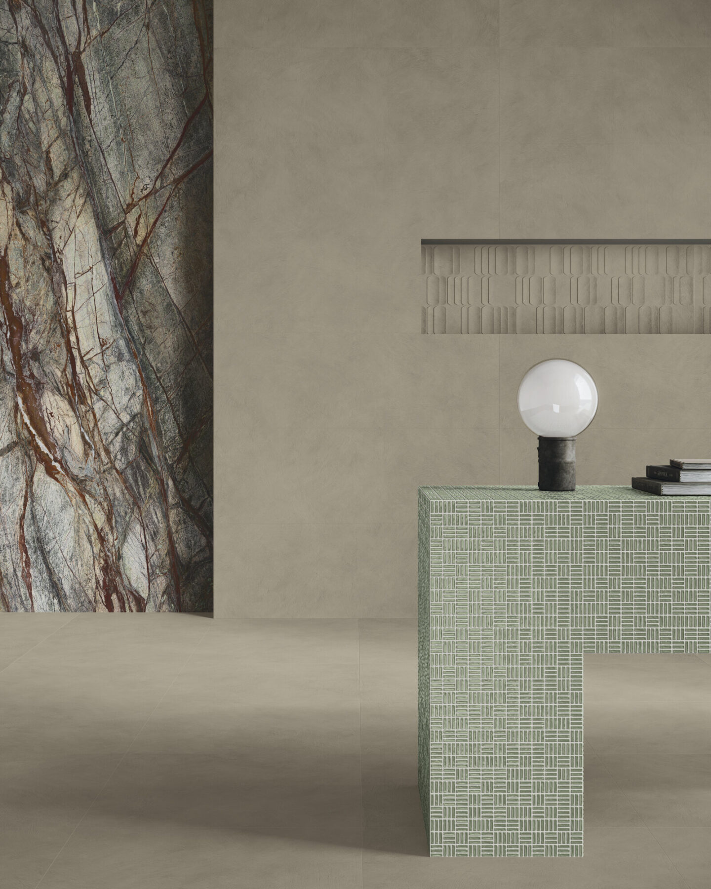 Miškus gaubianti ramybė ir natūralių kraštovaizdžių tyla persikelia į namus su Forest Green, perteikiančia natūralaus marmuro esmę. Gilūs tonai, perskrosti baltomis gyslomis ir šiltais niuansais, atkuria gamtos gyvybingumą ir egzotišką stiprybę. Forest Green jungia didelį formatą ir pažangias technologijas, užtikrindama tiek funkcionalumą, tiek estetiką. Poliruota apdaila sustiprina spalvinį gylį, o matinė tekstūra pabrėžia autentiškumą. Ši kolekcija kviečia gamtą į interjero erdves, suteikdama joms gaivumo, charakterio ir išskirtinį natūralų pojūtį.