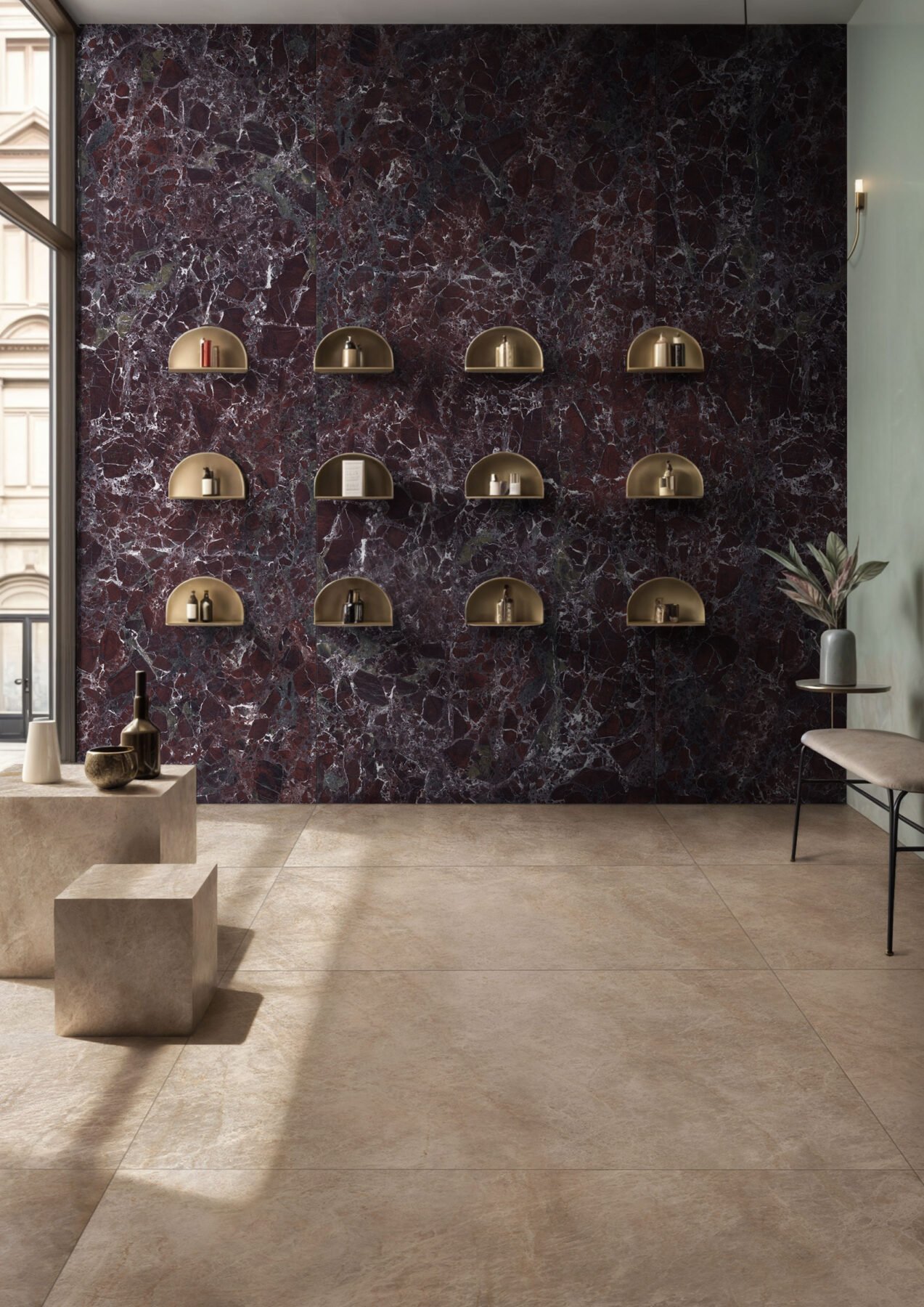 Akmens masės plytelės sienoms ir grindims iš Italijos.