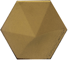 Modernus metalizuotų ir tūrinių šešiakampių plytelių Magical derinys. Kontrastas tarp spalvų ir tekstūrų suteikia interjerui eklektikos pojūtį. Akcentuojama vonios siena ant kurios nubyrėjimo principu klijuojamas 3D plytelių „lietus”.