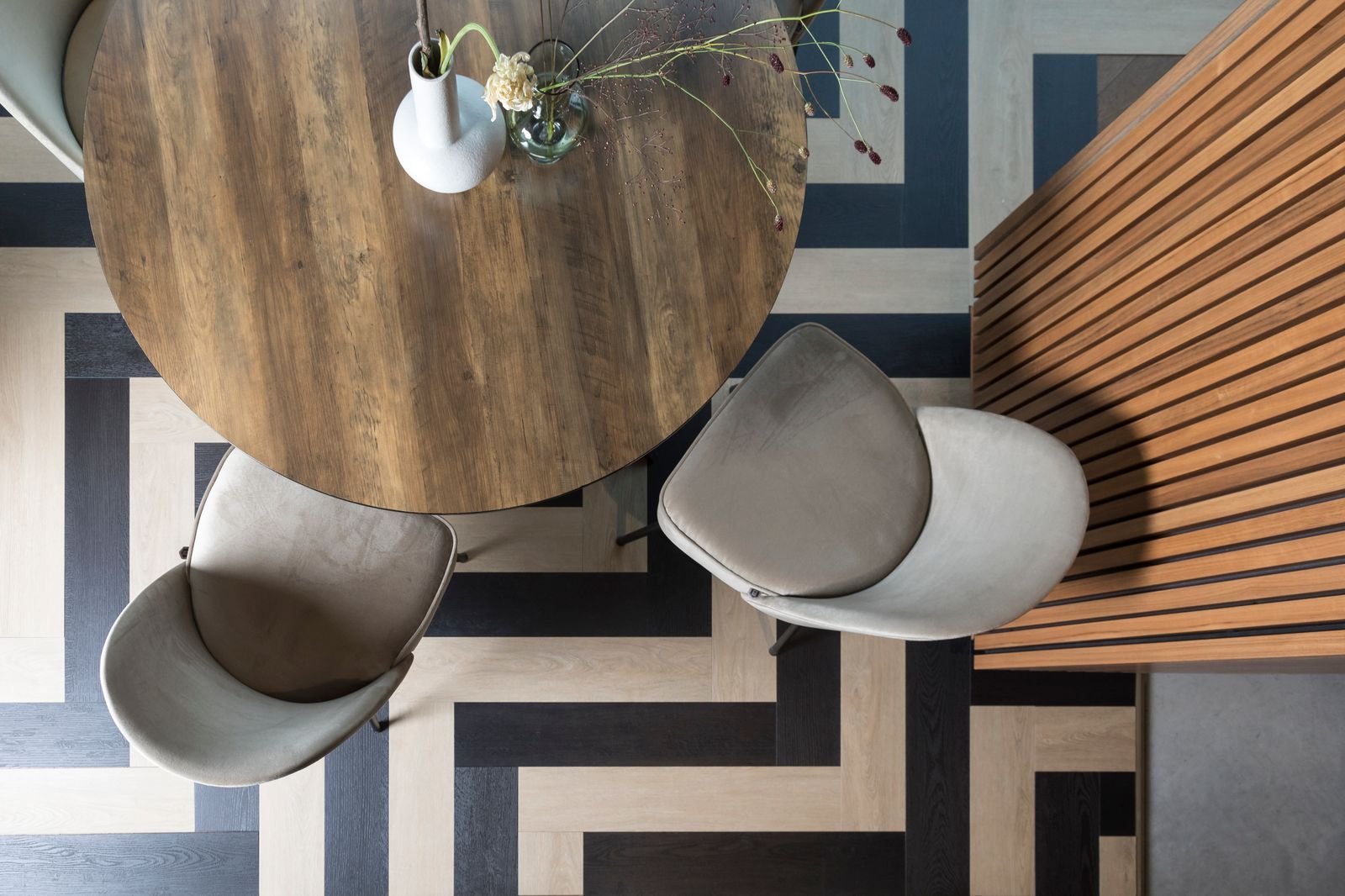 Vinilinės Largo lentos išsiskiria minimaliai pasikartojančiais medžio raštais bei matiniu paviršiumi, kuris nekuria plastikinio blizgesio efekto. Grindų kolekcijoje rasite du klojimo pasirinkimo variantus- tiesių lentų vinilinė danga arba eglutės rašto vinilas. Šių vinilinių grindų privalumas yra geras laidumas  šilumai, jos puikiai tiks šildomoms grindims. Technologiškai puikiai išdirbtos vinilinės plokštės paviršius puikiai atkartoja ne tik paviršiaus vaizdą, bet ir struktūrą, todėl grindys ne tik atrodys , bet ir jausis itin natūraliai.