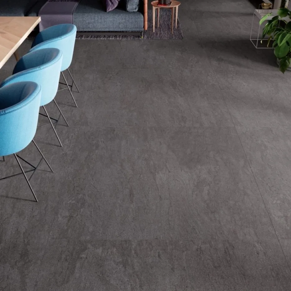 BASALTINA – Ši plytelė pasižymi tamsiai pilka, antracito spalva su subtiliu, natūraliu akmens raštu. Paviršius primena šlifuotą bazaltą – matomas švelnus, netolygus grūdėtumas ir lengvos, vertikalios bei įstrižos gyslos, suteikiančios jai natūralią, solidžią išvaizdą.