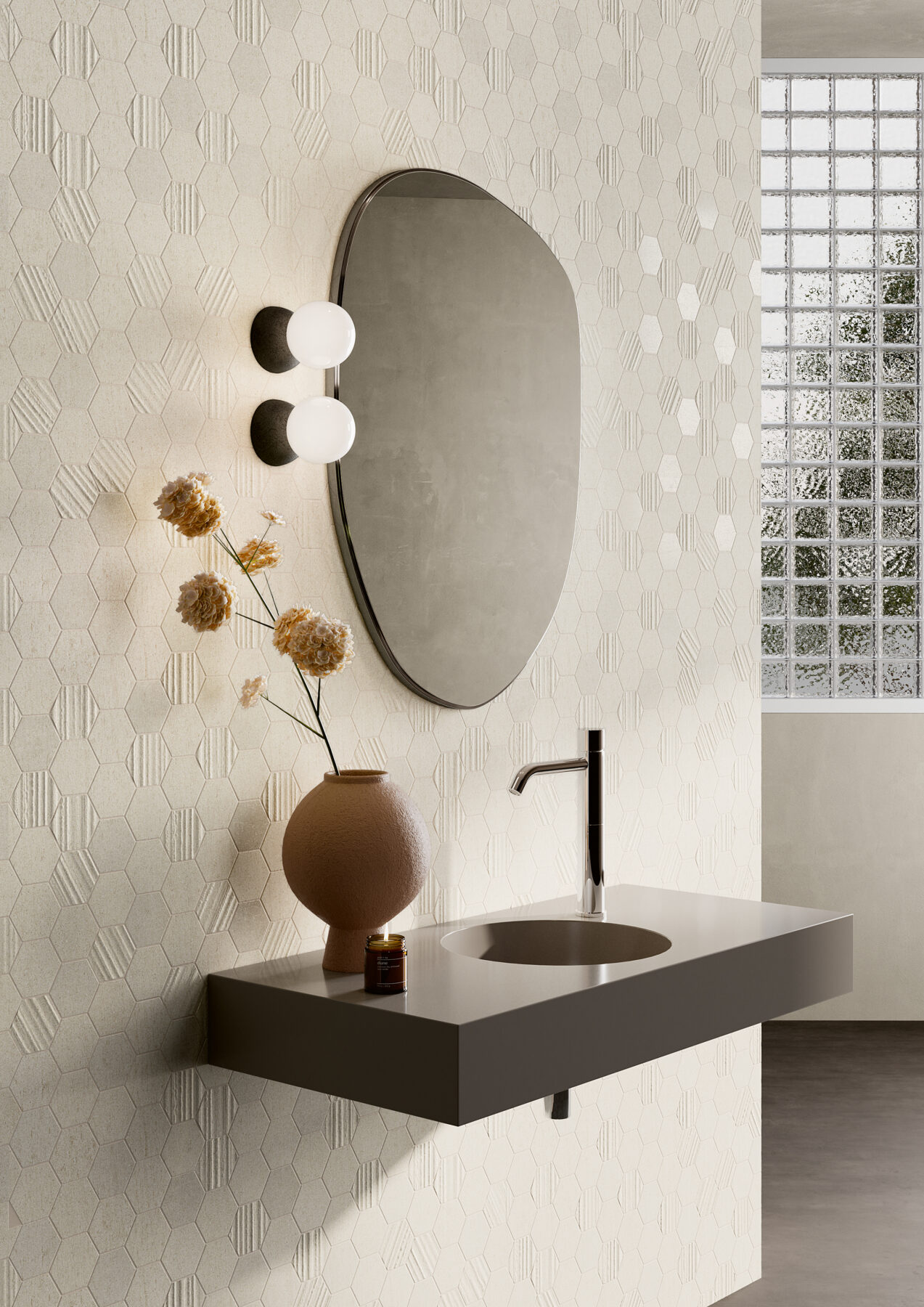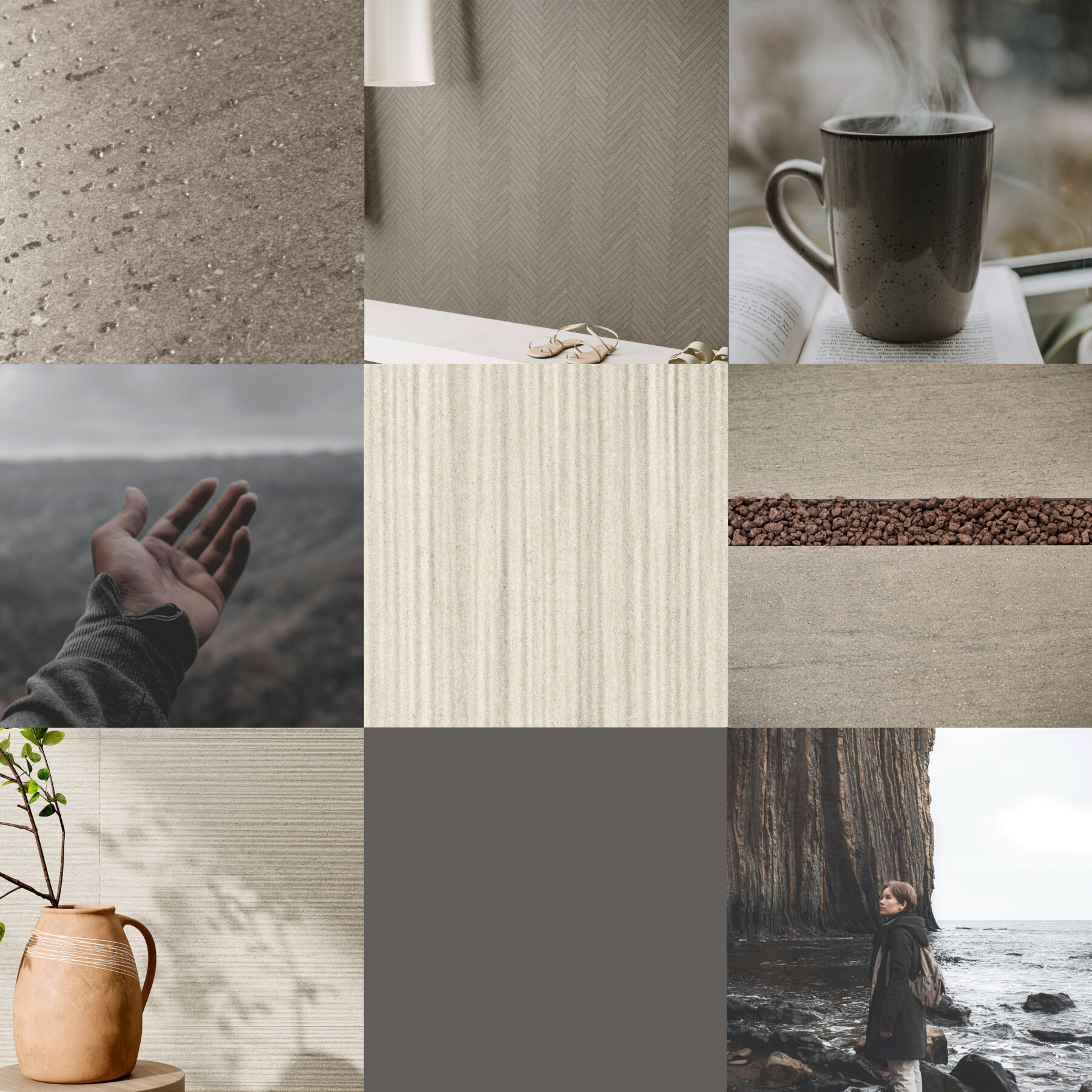 Kolekcija pasižymi subtilia, lengvai tekstūruota grafika, imituojančia švelniai nugludinto akmens ar natūraliai sendinto paviršiaus estetiką. Kolekcijos charakteristika: